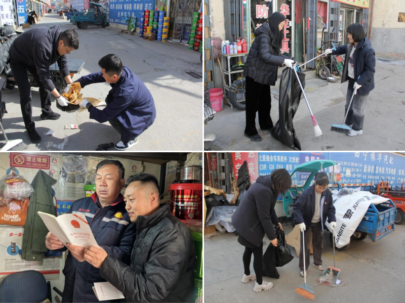 活動中,黨員、團員們手持掃帚、鏟子、垃圾袋等清潔工具,沿著汽配市場樓宇、屋頂?shù)冗M行了全面細致的清理,大家分工明確,干勁十足,深入灌木叢及河中,齊心協(xié)力,不畏臟累,清理生活垃圾、廢棄物以及白色漂浮物等雜物,不放過任何一個衛(wèi)生死角。黨員、團員們還向市場商戶和過往群眾宣傳環(huán)保知識,倡導大家愛護市場生態(tài)環(huán)境,杜絕向市場內(nèi)傾倒垃圾等不文明行為。