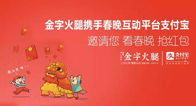 金字火腿攜手支付寶,猴年春晚給全國(guó)人民發(fā)紅包