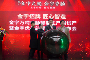 11月23號,由金字火腿主辦的“金字萬噸浙味香腸智能生產(chǎn)線試投產(chǎn)暨金字優(yōu)品新零售發(fā)布會”在浙江省農(nóng)博會上隆重舉行,這意味著金字火腿將全面發(fā)力新零售精準(zhǔn)營銷,不斷開拓香腸等傳統(tǒng)肉制品千億市場。浙江省農(nóng)業(yè)廳、金華市相關(guān)領(lǐng)導(dǎo)、新零售行業(yè)精英出席了本次發(fā)布會,共同見證了這一盛況。在大咖云集的發(fā)布會現(xiàn)場,金字香腸獲得了大家的交口稱贊。對此,金字生產(chǎn)負(fù)責(zé)人告訴記者,近日試產(chǎn)的金字萬噸香腸智能生產(chǎn)線,是從德國引進(jìn)的智能化香腸生產(chǎn)線,擁有完備的可追溯系統(tǒng)、智能化車間管理系統(tǒng),標(biāo)準(zhǔn)化生產(chǎn)將大幅提高生產(chǎn)效率,確保